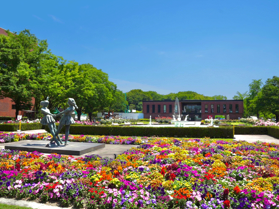 また、一面芝生が広がる中央公園は、市民の憩いの場として親しまれている公園です。 公園の中の市民広場(4.7ヘクタール)には、世界的な彫刻家・豊福知徳氏の作で、公園のシンボルである大噴水「愛の泉」が設置されています。