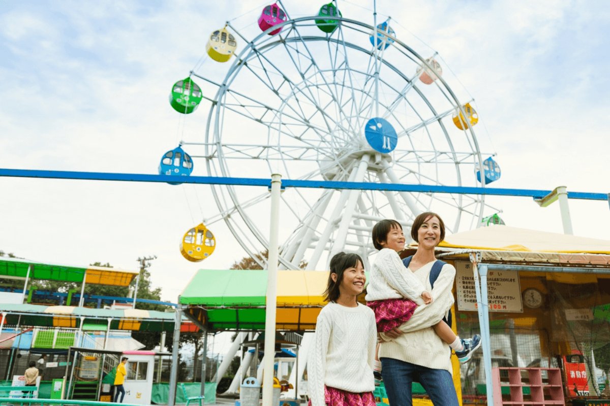 また、園内にカラフルな観覧車がある遊園地も魅力です。メリーゴーランドやスカイサイクル、トランポリンなどが楽しめます。