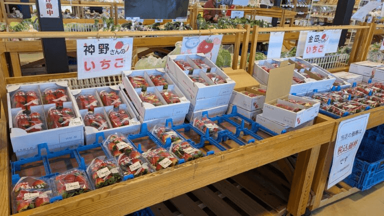 地元ならではの新鮮な農産物や加工品などが勢揃いしているのも特徴です!加工品農産物直売所では、新鮮な野菜や果物など、豊かな自然に育まれた農産物が並んでいます。