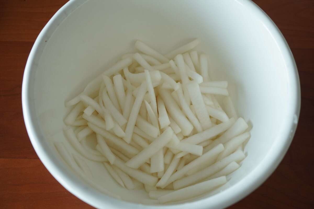 大根とキャベツを6㎜幅程度の細切りにします。
