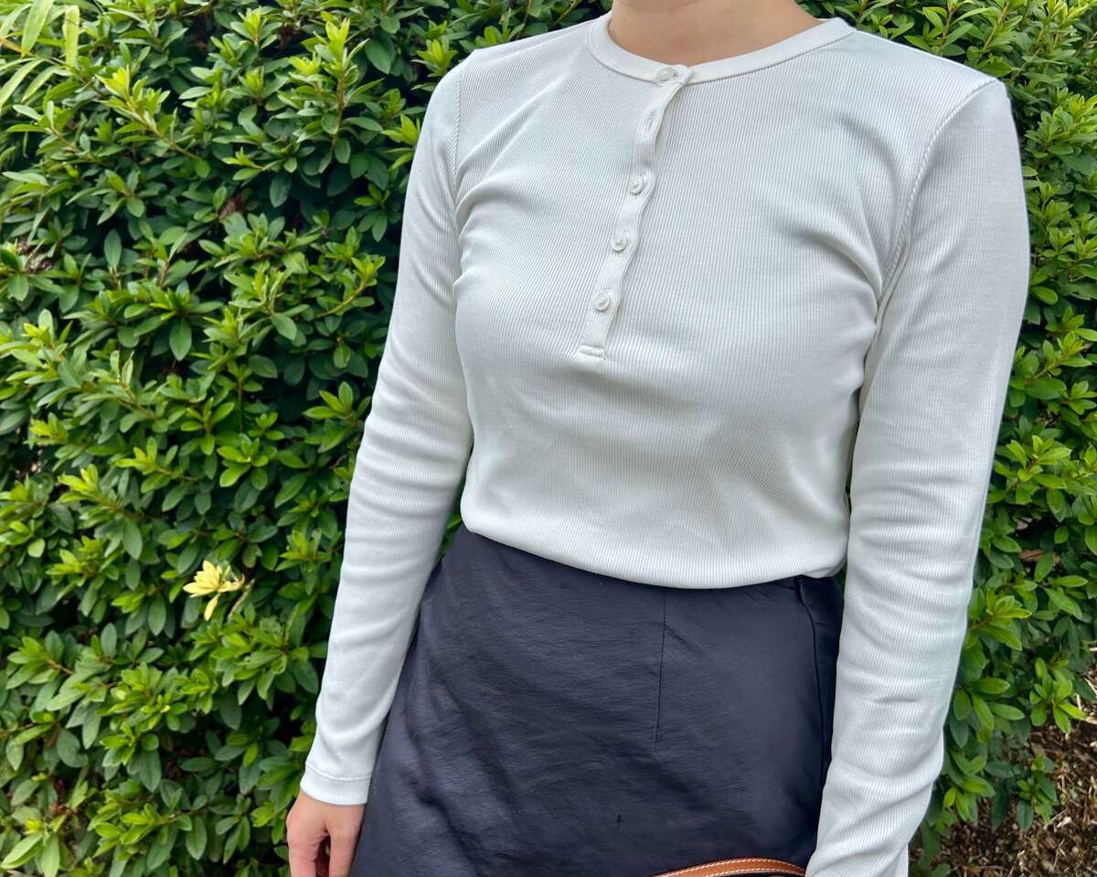 こちらは、ユニクロで働いている友人がおすすめしてくれた「リブヘンリーネックT長袖」。