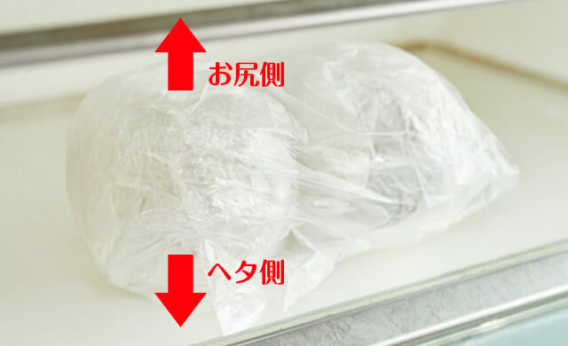 冷蔵方法②ラップで全体を包み、ポリ袋に入れる