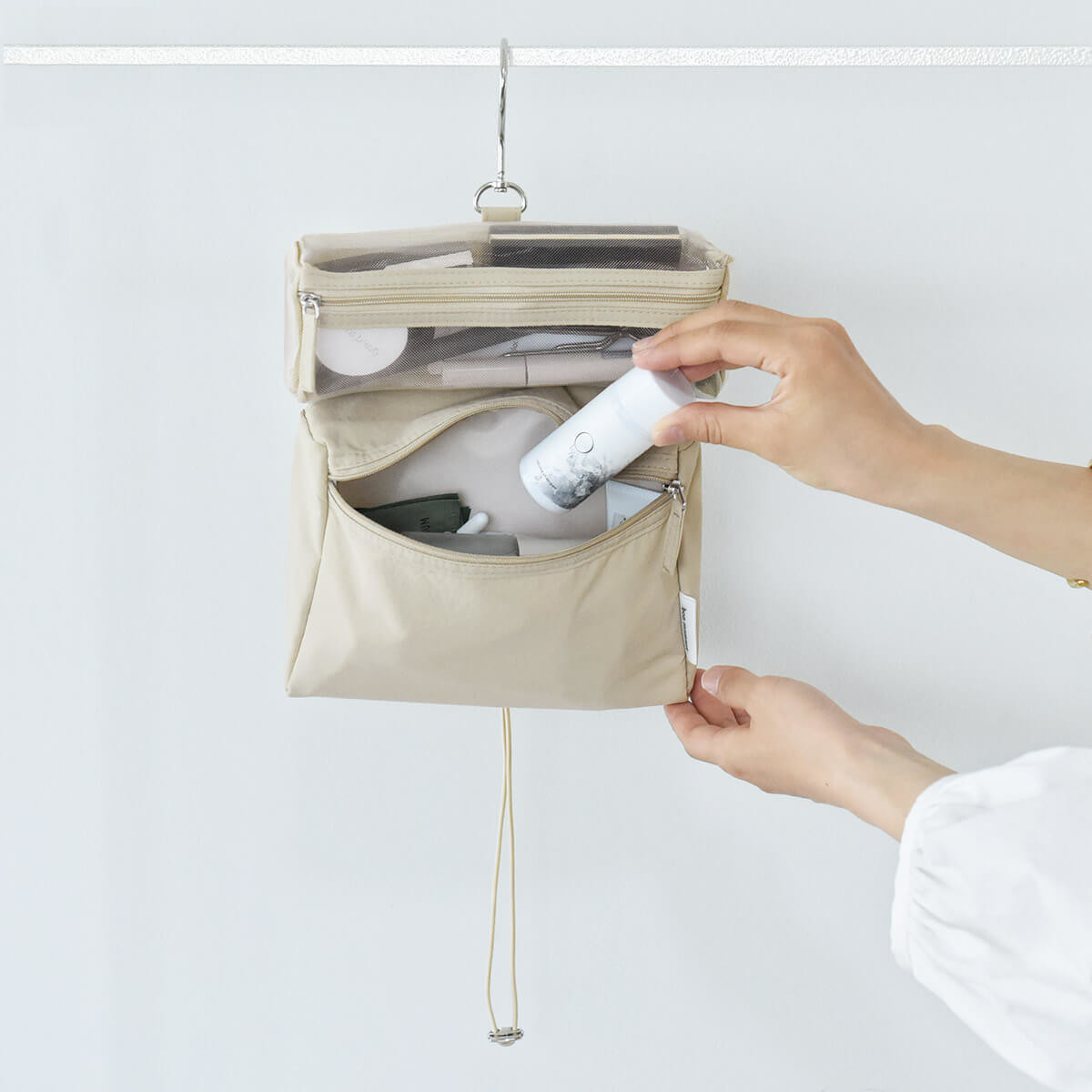 日数に合わせて、大きすぎも小さすぎもしない“適量”をカスタムできる、ムダのなさが今っぽい新型吊り下げポーチ。
