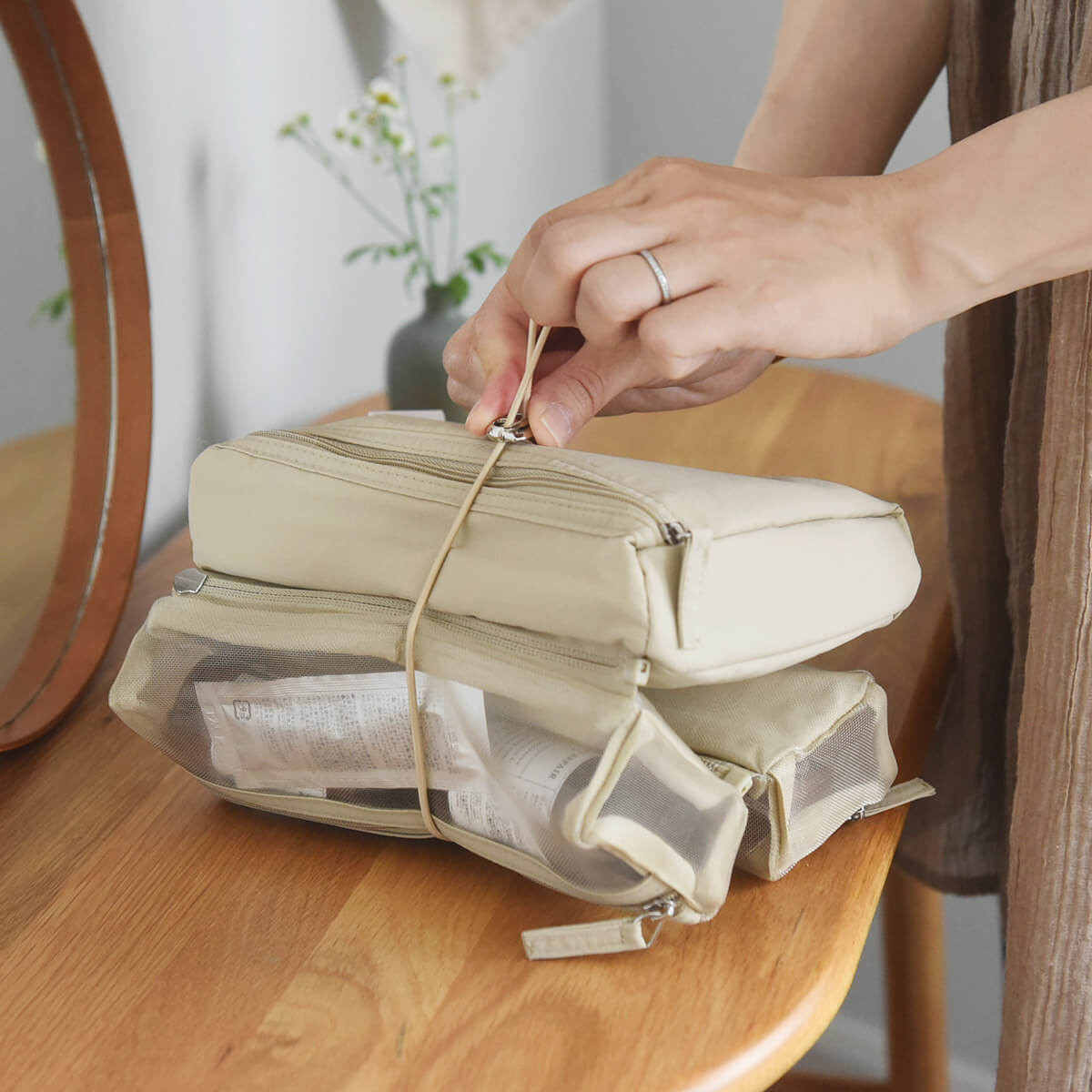ベージュもグレーも"即売れ"しそう!【ポーチが増え続ける問題】解決!日帰りも長旅もコレ1つでOK!優秀系