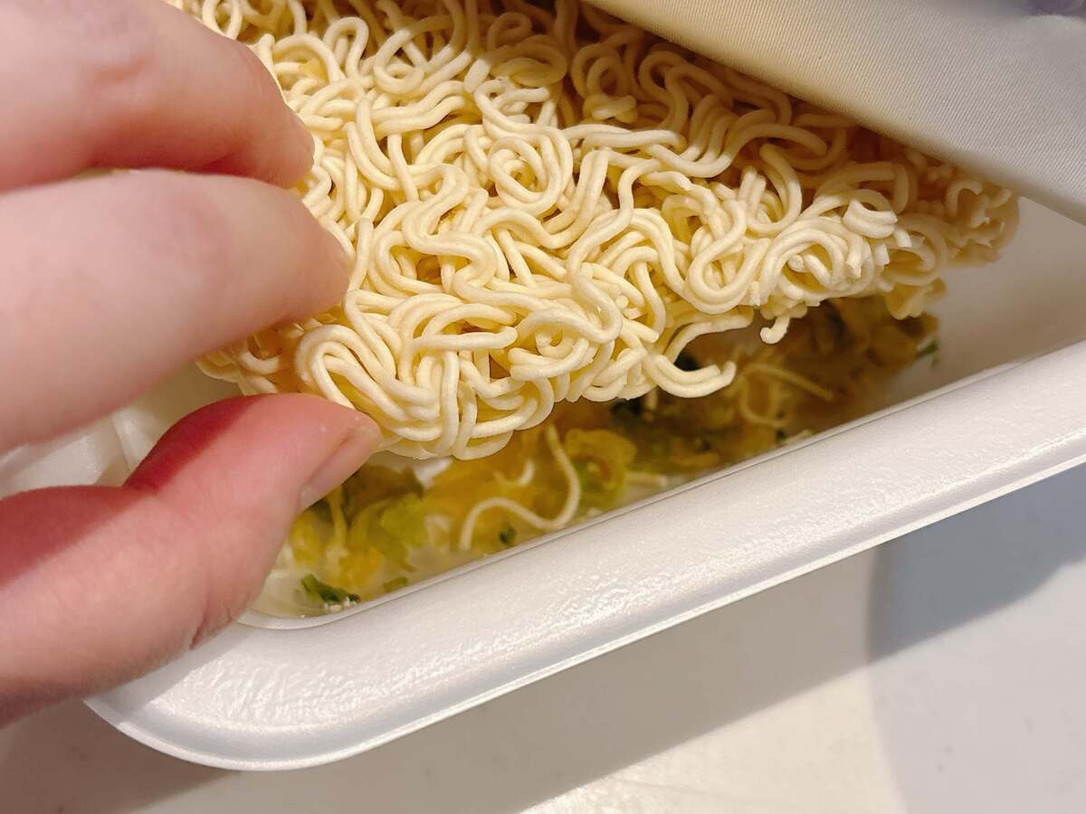 袋を開ける手間も省けるし、お湯を抜いてもかやくがふたの裏に付かないので、地味にスゴイんです。