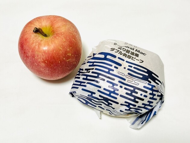 そもそもボリューミーなイメージのサムライマック。そこに何かを挟むって考えたこともありませんでしたが、さらに挟むものがリンゴって……。