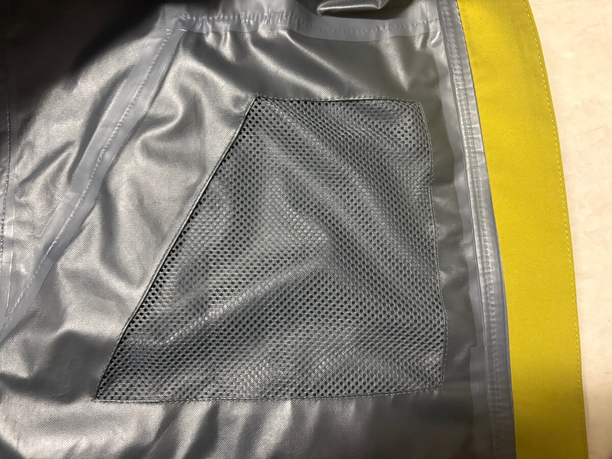 機能性大好きな私が推す理由はこれだけではありません。レインジャケットは「着ると暑い」問題が発生する時があります。このジャケットはポケット部分がメッシュになっているので、他の商品に比べて若干通気性に配慮がされているのかな?と思いました。