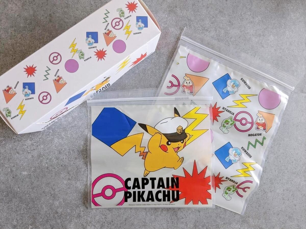 真ん中にドーンと構えるキャプテンピカチュウが可愛い!2デザイン×15枚ずつ入っているものの、もったいなくて使えなそう……。