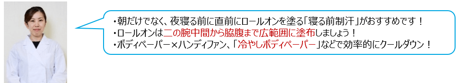 夜は睡眠中の寝汗予防としてウォーターやスプレーがおすすめ。