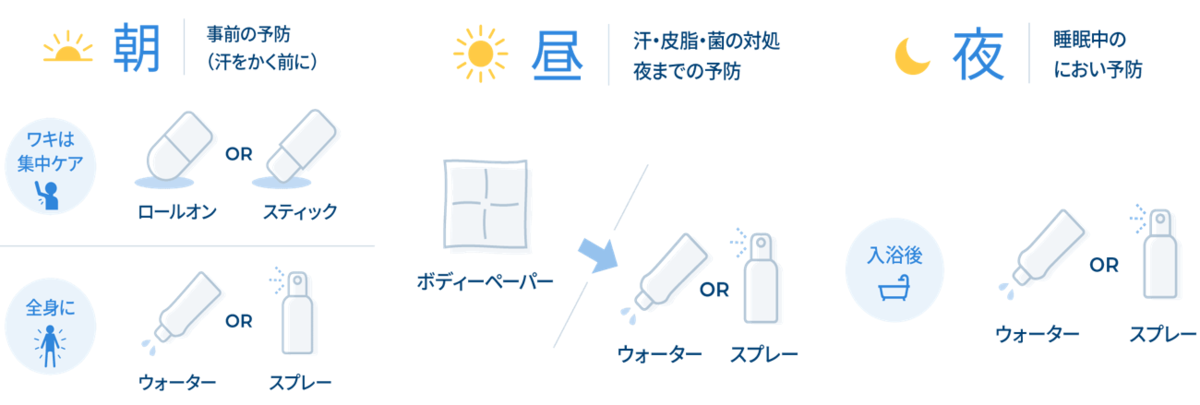 制汗剤は【朝・昼・夜】で使い分け!効果的な汗・におい対策を紹介