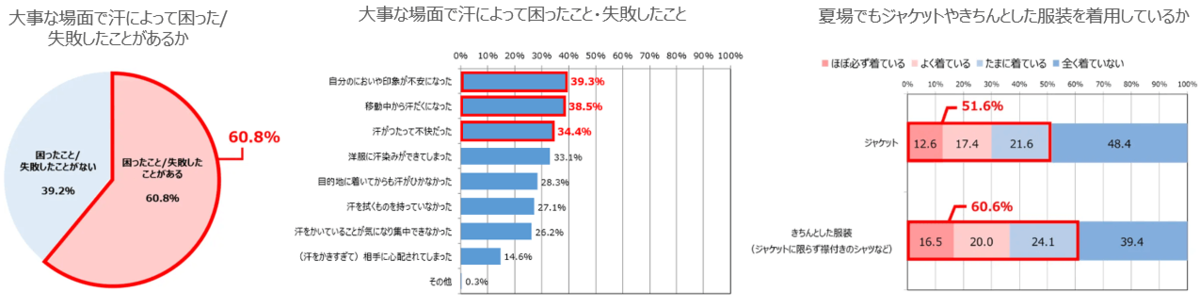 6割が大事な場面で汗によって困った/失敗した経験あり!2人に1人が「夏場にジャケット着用」の実態も