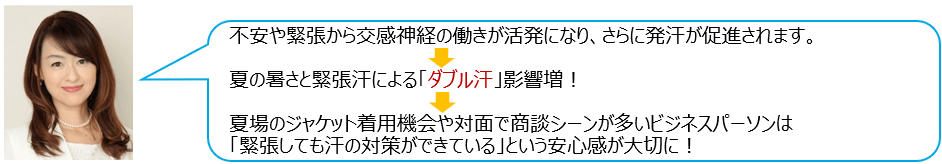 また、2人に1人が夏場でもジャケットを着用しており、ビジネスパーソンの汗対策ニーズの高まりも顕著です。