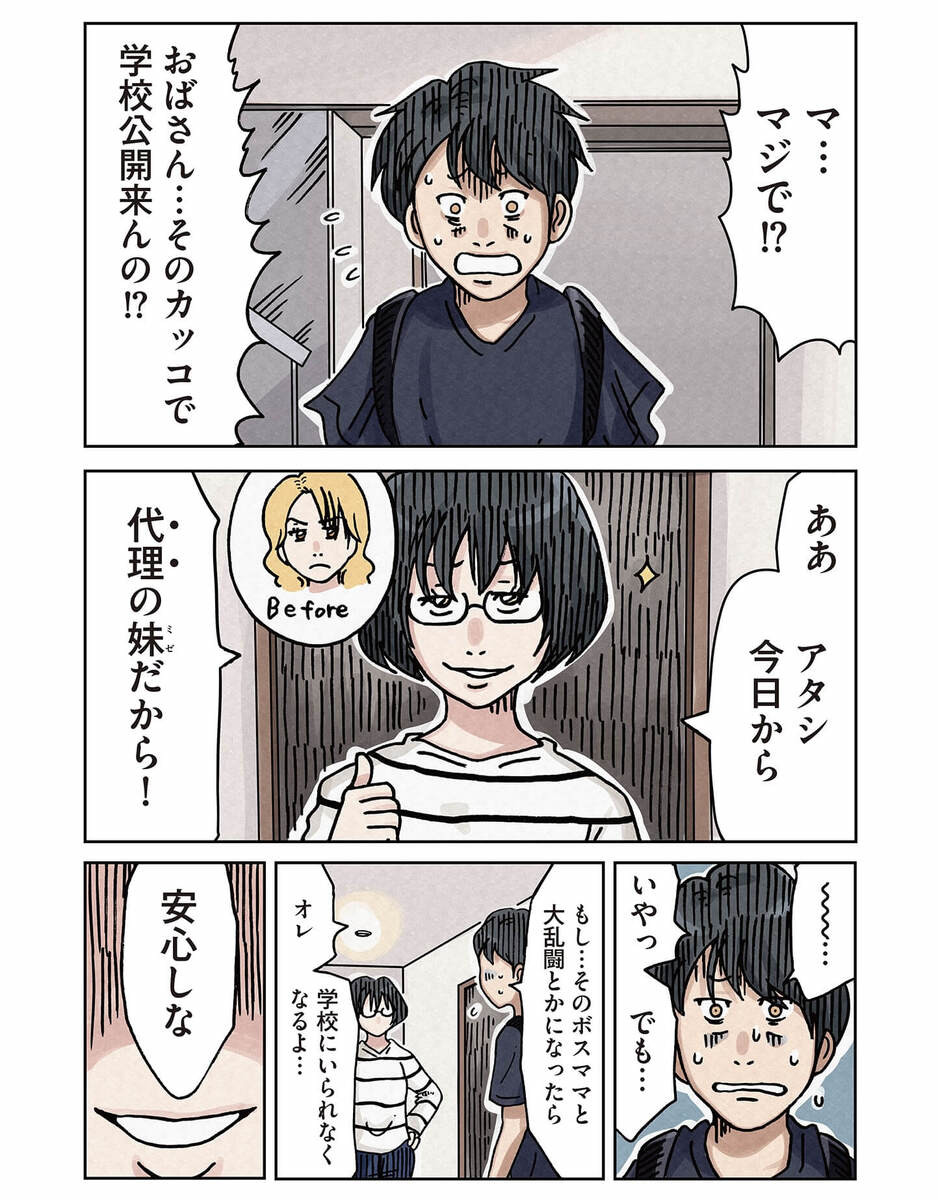 【漫画】妹のフリして学校に突撃!「なーんかいかにもってツラだな〜」ボスママの逆鱗に触れちゃった!?【ボスママに徹底的に復讐する話②】