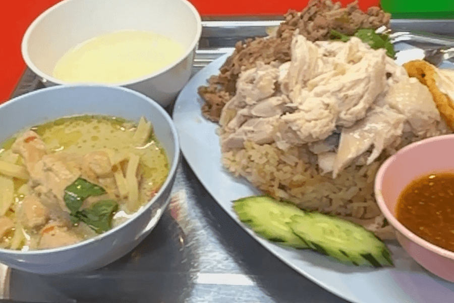 カオマンガイの鶏肉は柔らかく、タレが自家製でゆで鶏にぴったりの甘辛味。鶏出汁で炊いたご飯はジャスミンライスですが、ふっくらと炊き込みご飯のようで最高です!