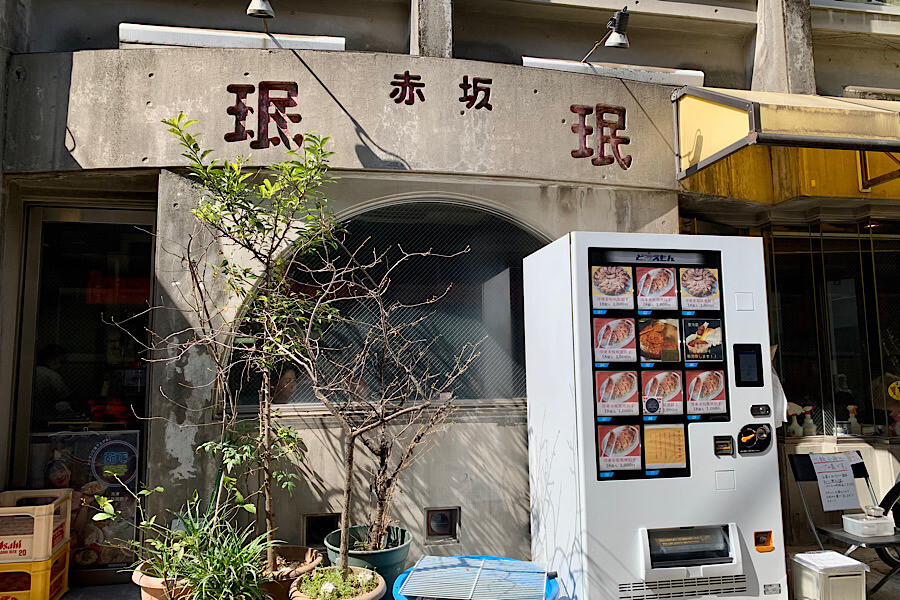 ランチ時に「赤坂珉珉」の店舗で食べるのはひと苦労ですが、店の前に冷凍餃子の自販機があり、持ち帰って調理して食べることは可能です。