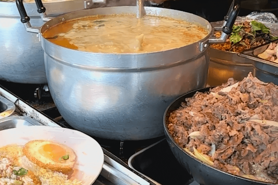 いよいよお店がオープンすると、入口に料理が盛り付けられた鍋がいくつも並んでいて、本当の屋台のようでワクワクします。