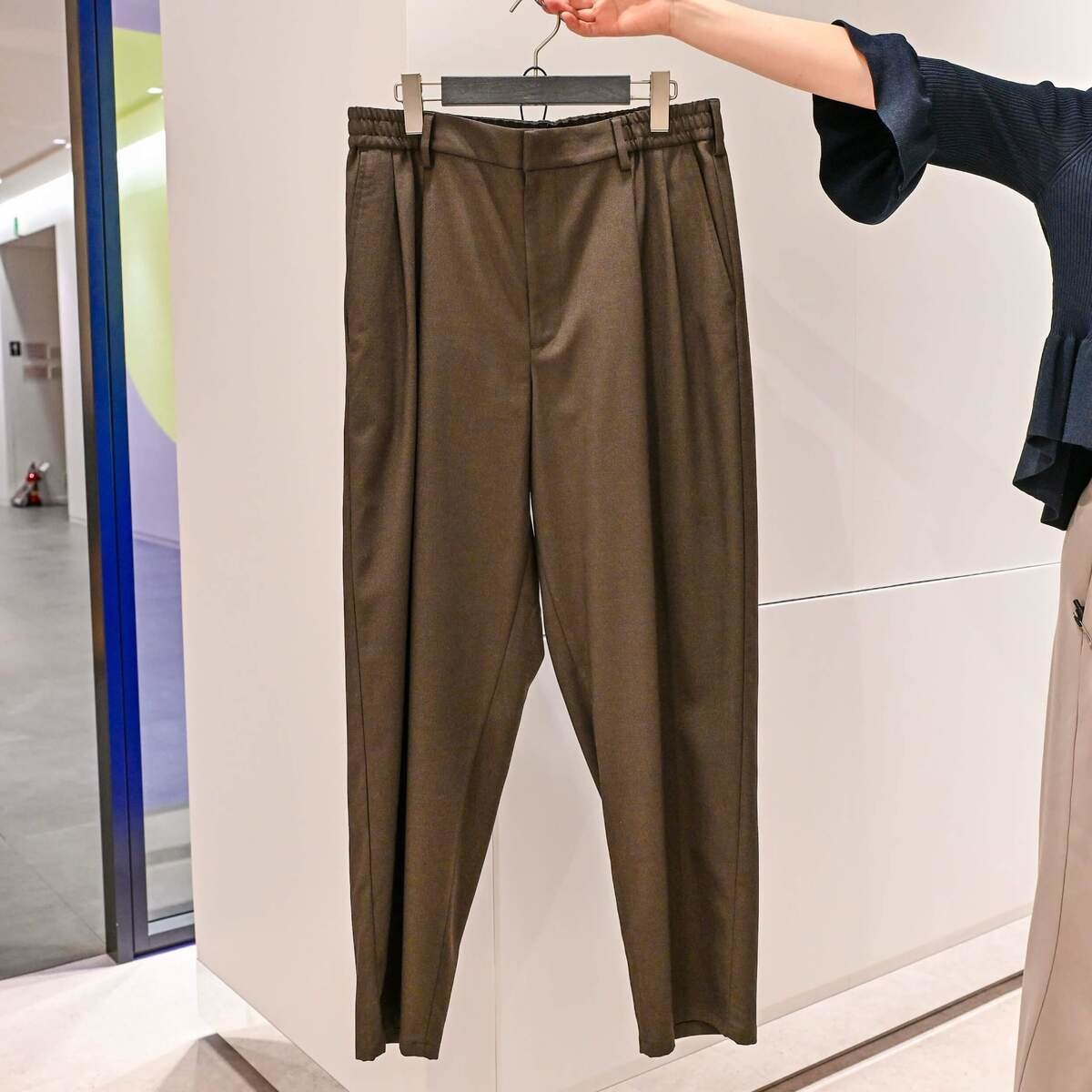 たとえば、最初に紹介したスラックスのカラー展開も「ブラック・グレー・ダークブラウン」の3色。通常ならこのラインナップに入るのは「ブラック・グレー・“ネイビー”」が定番ですが、今回はあえてネイビーを外してブラウンが採用されているんです。