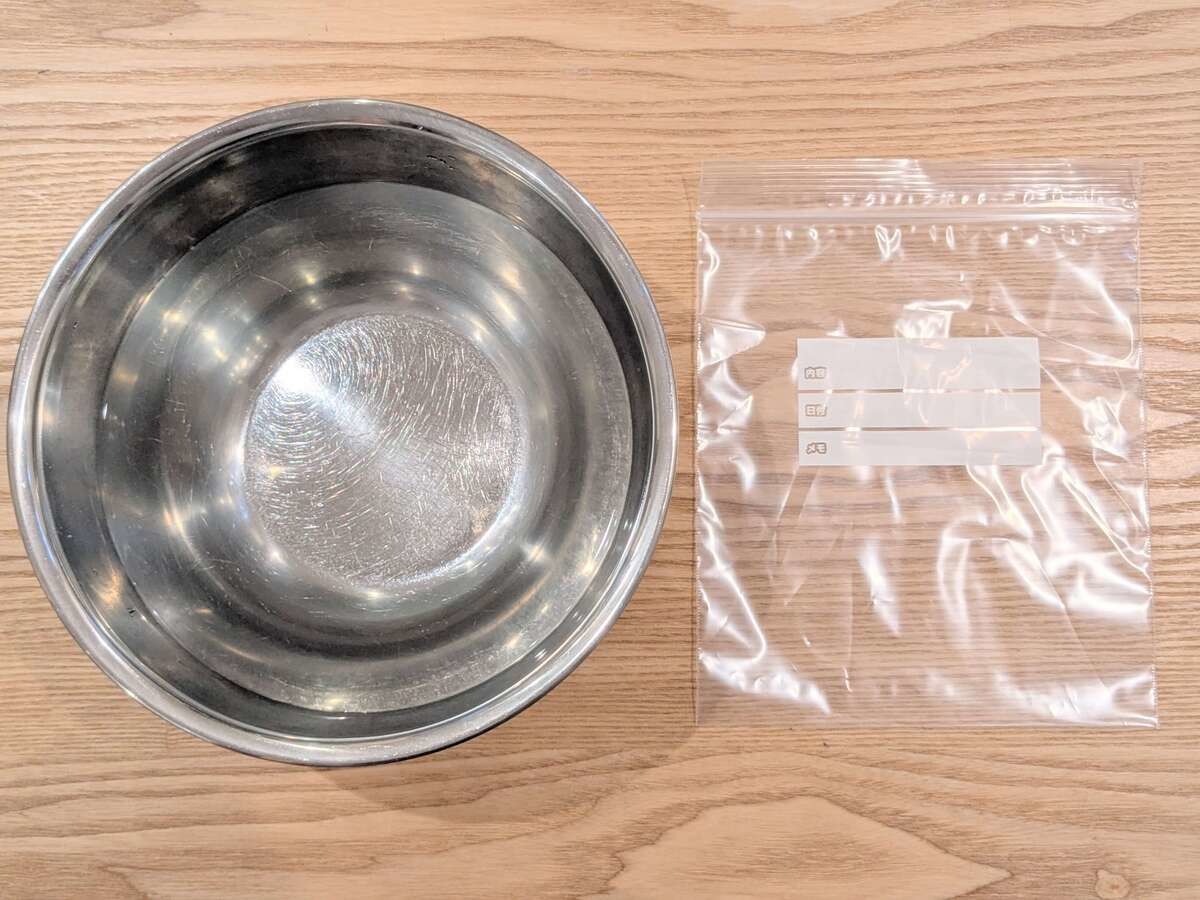 はじめにご紹介する裏ワザでは、ジッパーバッグよりも少し大きいサイズのボウルを用意します。