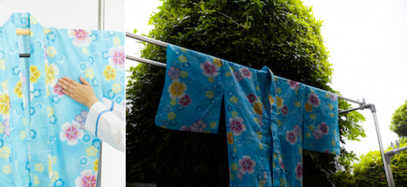 お洗濯した後の浴衣は、早めに干しましょう。屋外で陰干しする方法と室内干し、2つの方法をご紹介します。