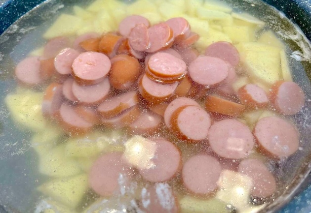 作り方③フランクフルトソーセージとじゃがいもを茹でる