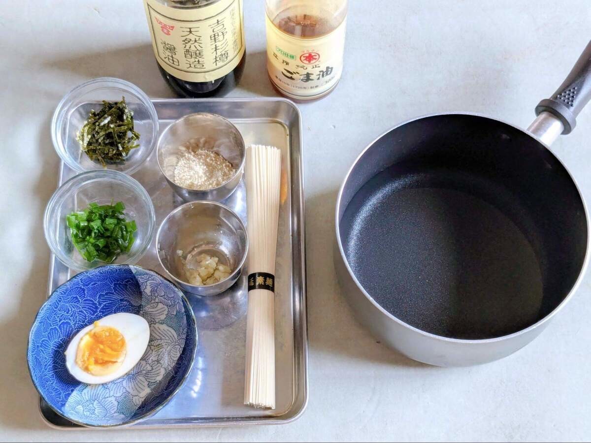 スープができたら、そうめんを茹でましょう。筆者は袋に記載の時間よりも短めに茹で、ザルにあげて流水でもみ洗いしました。