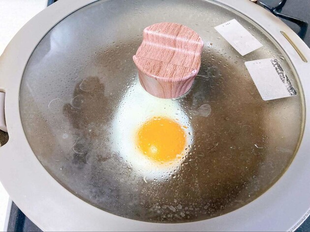 すぐフタをして、弱火で1分焼きましょう。1分経ったらフタを取り、お好みの焼き加減にして完成です。