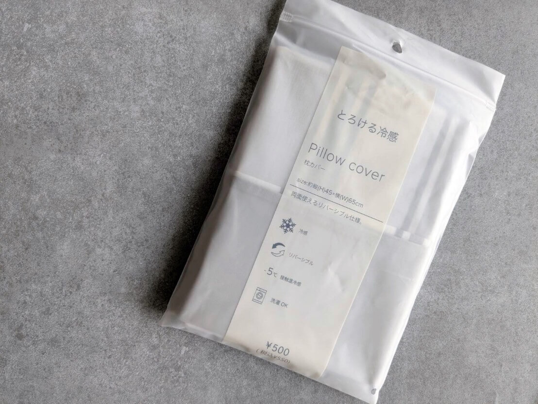 それがこちらの枕カバー。暑がりと寒がりが同じベッドで寝る場合、ひんやりシーツや冷感敷パットが使えないのが難点(寒がりが震える)でしたが、枕カバーなら問題ありませんよね。