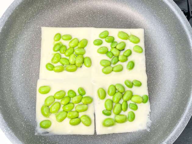 スライスチーズ4枚に枝豆をのせ、中火で焼いて胡椒をかけると、おいしく仕上がります。 pic.twitter.com/du7hohU4kD