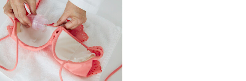 「シリコンブラ(水着用のパッド)」は、洗濯用洗剤や柔軟剤は、使用できません。洗い方は商品に記載された説明書に則って行いましょう。