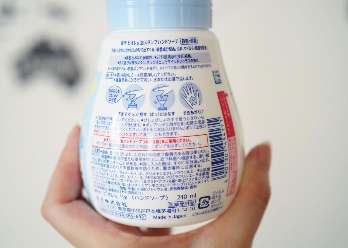 一般的な泡で出るハンドソープのボトル容器とは異なる形状で、広げた手をぐっと押し込むと手のひらに泡が星型で出てくるという、限定ポンプヘッドになっています。