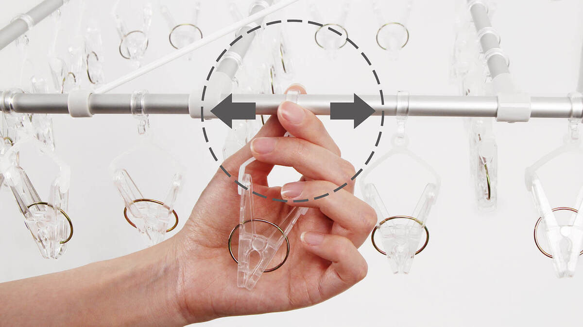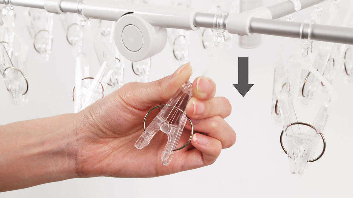 最大の特徴は、洗濯物を1つずつ外さなくてもスッと引っ張るだけでピンチが外れるところ!