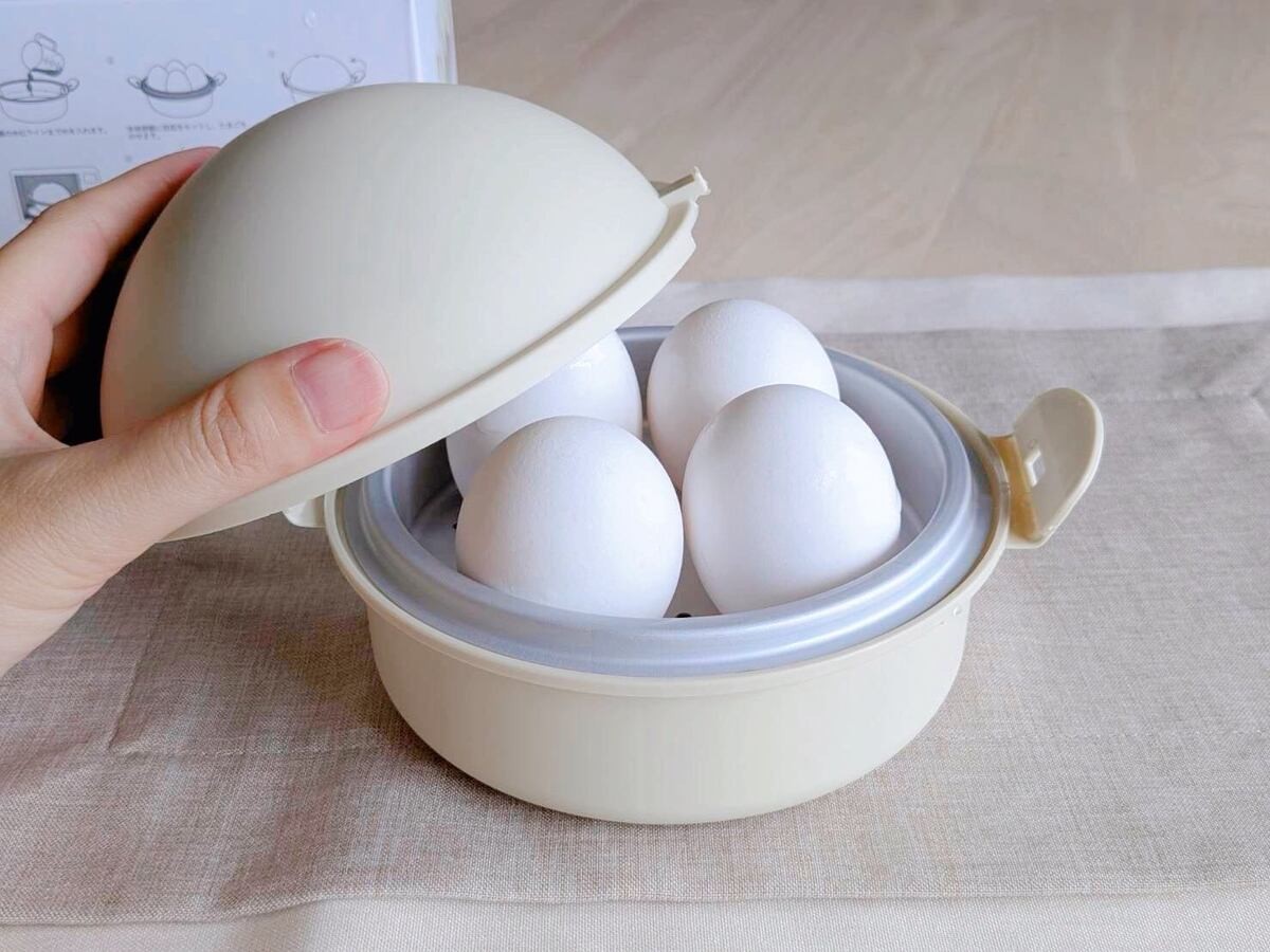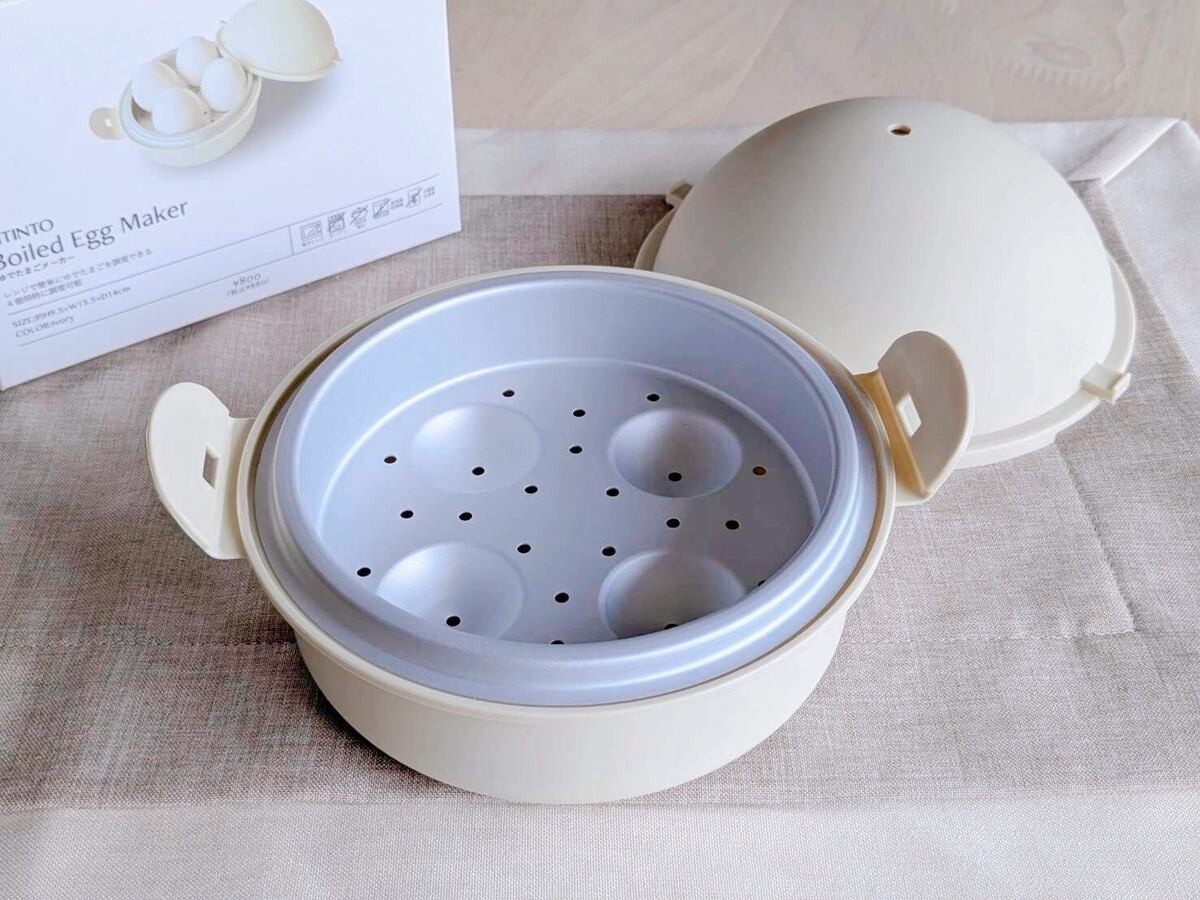 うちはコンロが2個しかなく、鍋でゆでたまごをぐつぐつしている間はコンロが1つしか使えなくなるので、電子レンジでなんとかなるのも嬉しい!シンプルな見た目もスリコらしくて良いですよね。