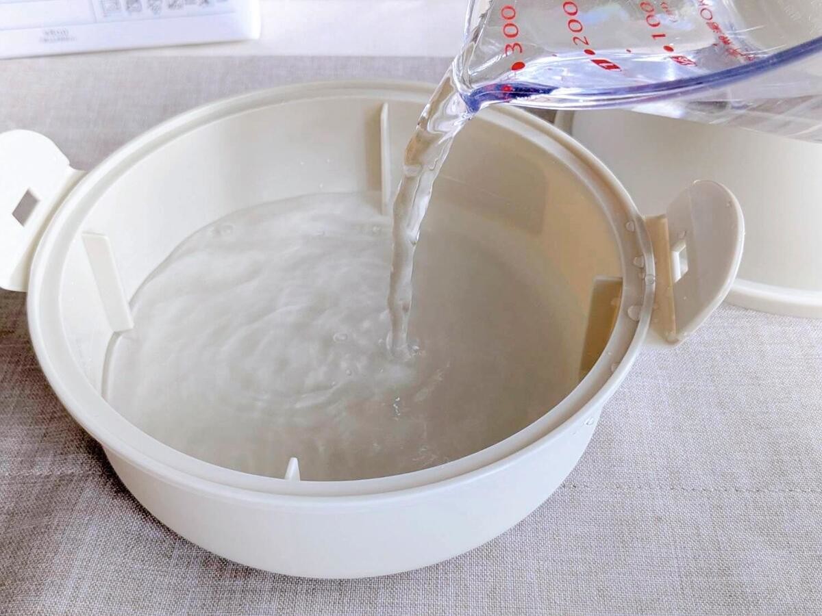 あとは、蓋をして電子レンジに入れて加熱するだけ!