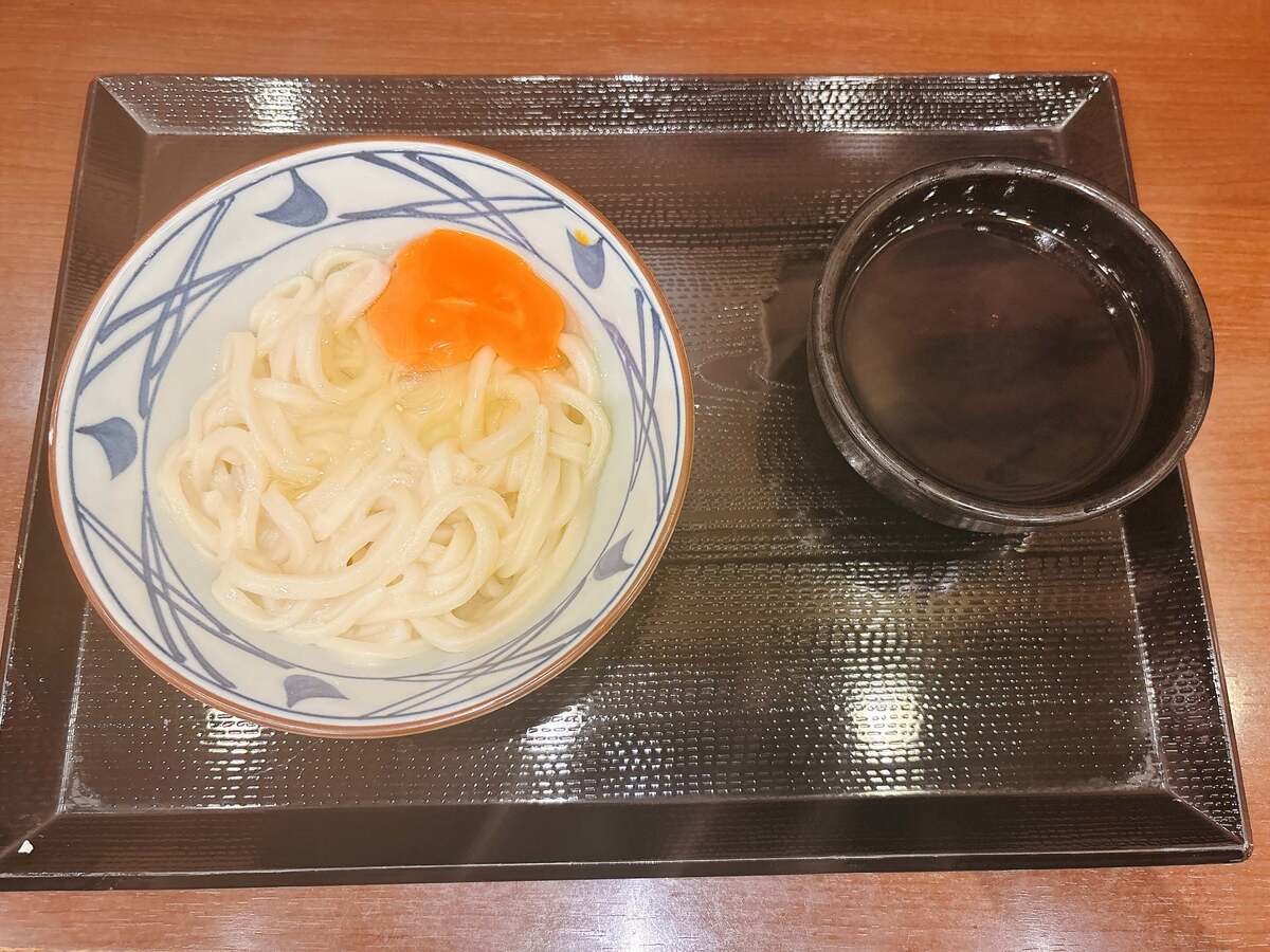 早速、丸亀製麺に行って「釜玉うどん並(税込530円)」を注文(卵黄が崩れてしまいましたがご愛嬌)。