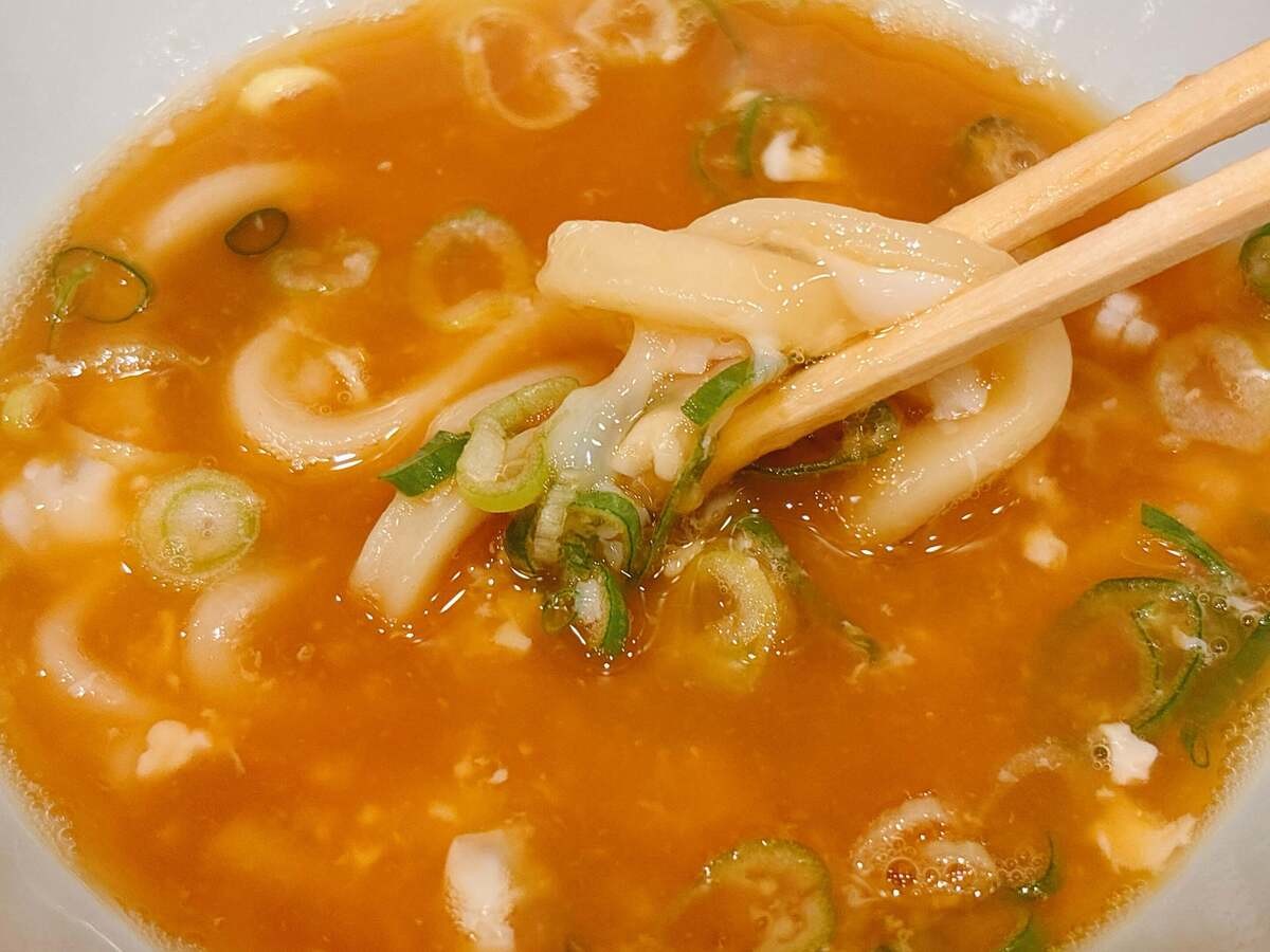 うどんの熱でとろっとした白身と濃厚な黄身。
