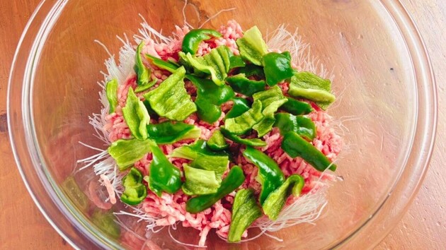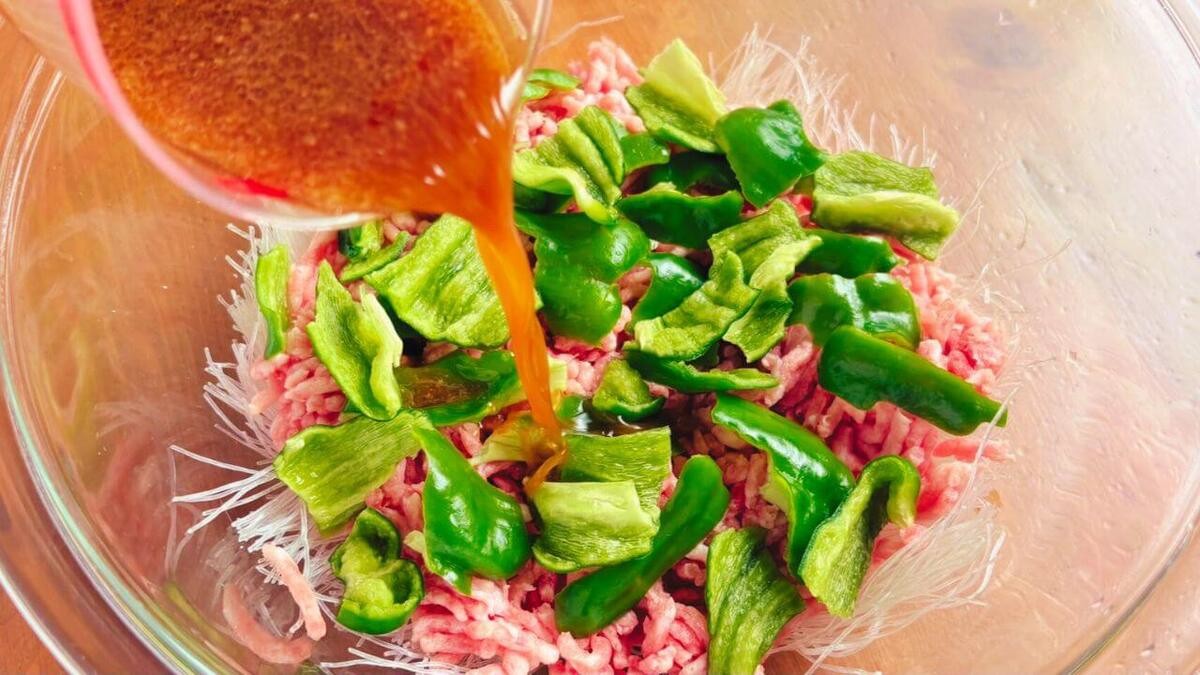 ピーマンのほどよく残った食感と、豚ひき肉の旨みが合わさって、とても食べごたえのあるメニューでもあります。