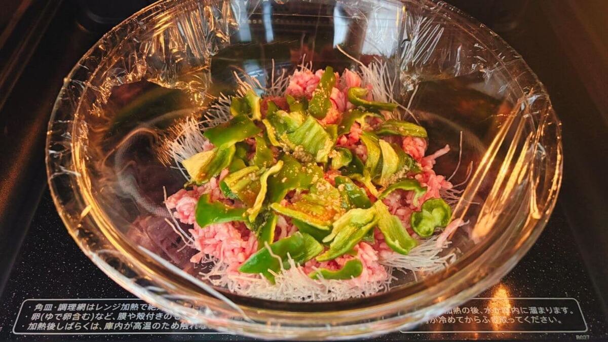 ラップをかけて電子レンジ600Wで4分加熱します。