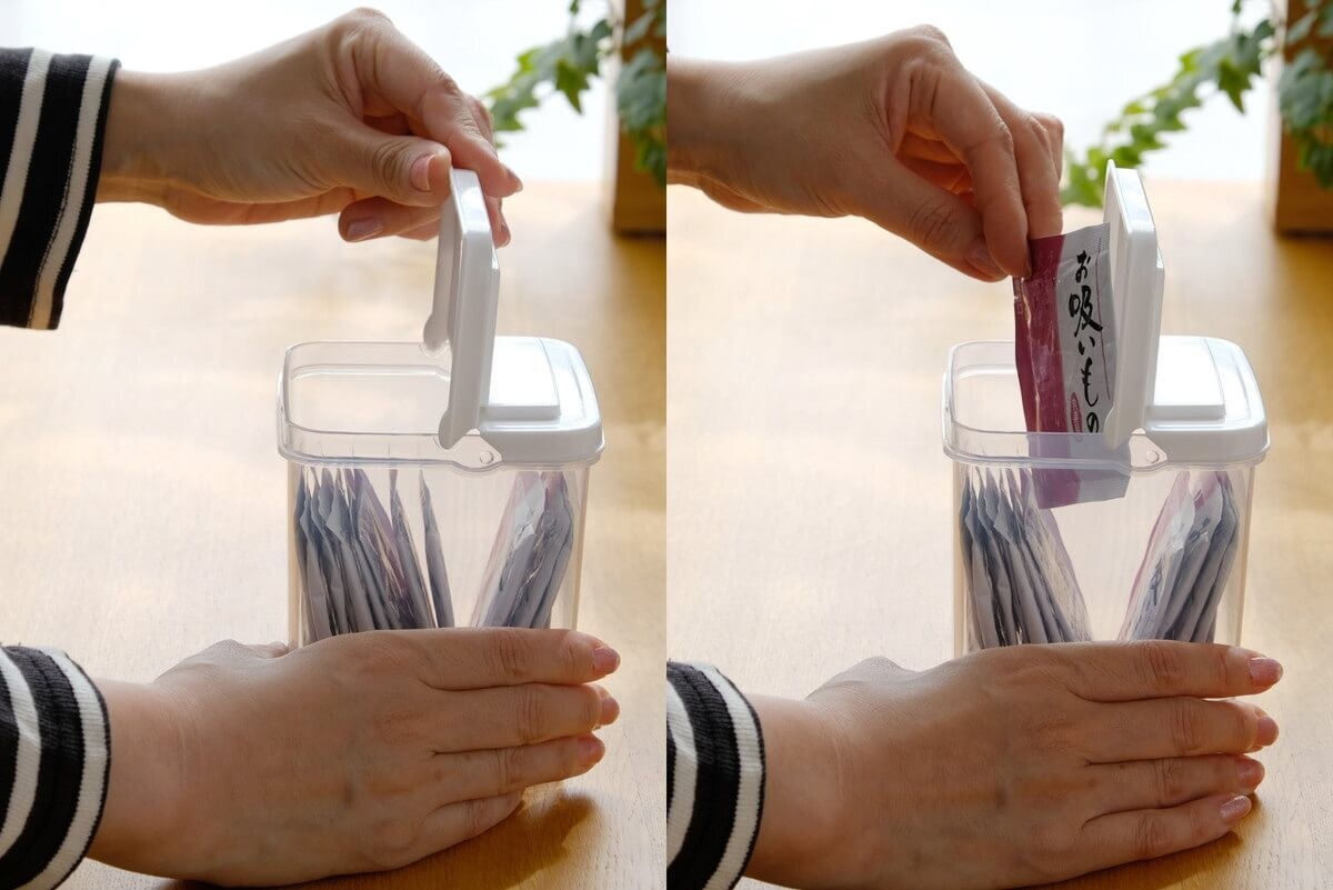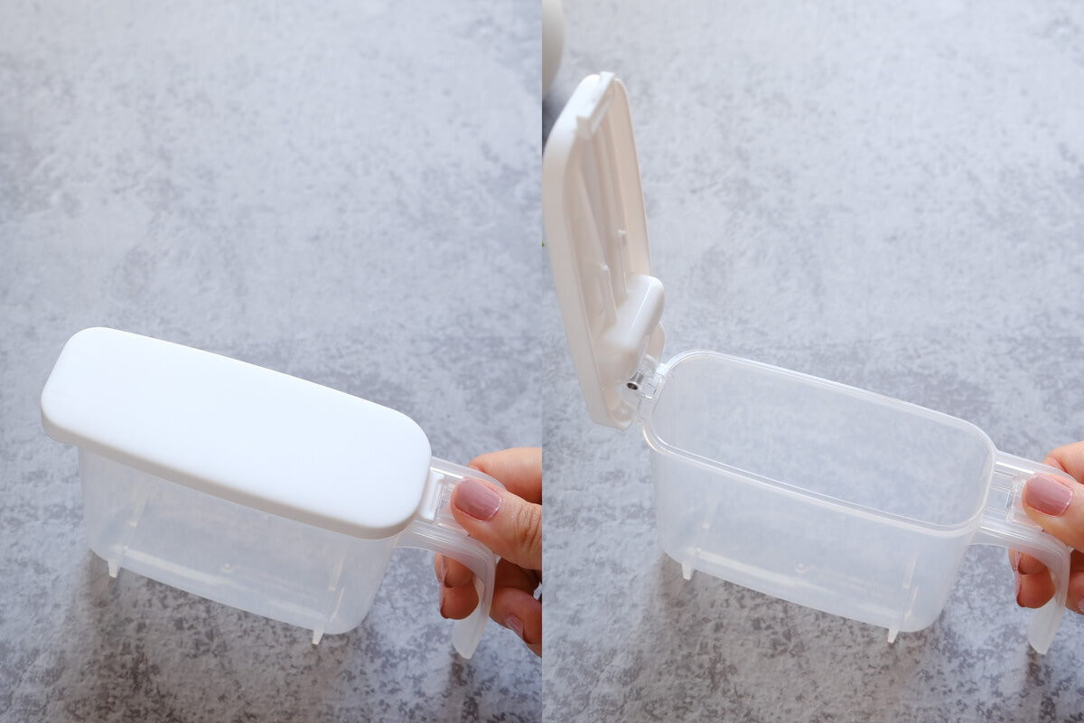 フタがぴたっと立つので、出し入れもとってもラクです。
