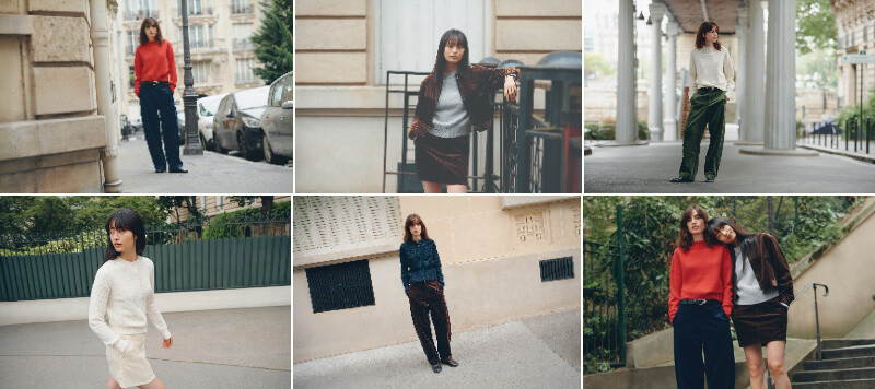 フレンチシックの魅力を表現する太うねのコーデュロイのシリーズには、カジュアルなコーディネートに活躍するジャケットやカーブパンツ、ミニスカートが揃い、セットアップのスタイリングが叶います。