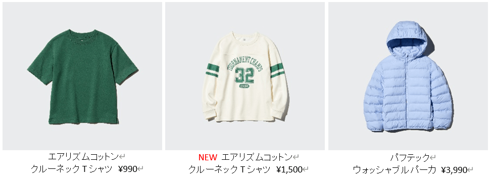 また、汗をかきやすい子どもたちに、通年で着られるTシャツを拡充。コットンの見た目でさらりと快適な「エアリズム」を使用した「エアリズムコットンクルーネックTシャツ」やUTのほか、長袖の「エアリズムコットンクルーネックTシャツ」には新しいグラフィックデザインを加えて展開されます。