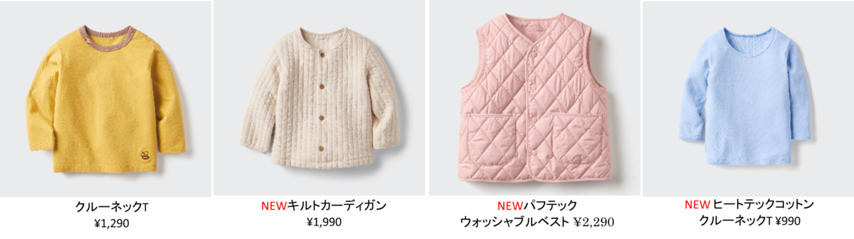 インナーでは、赤ちゃんのための「ヒートテックコットンクルーネックT」が新登場。肌面にコットンを100%使用した素材を微起毛することで、より柔らかな肌触りに仕上げています。