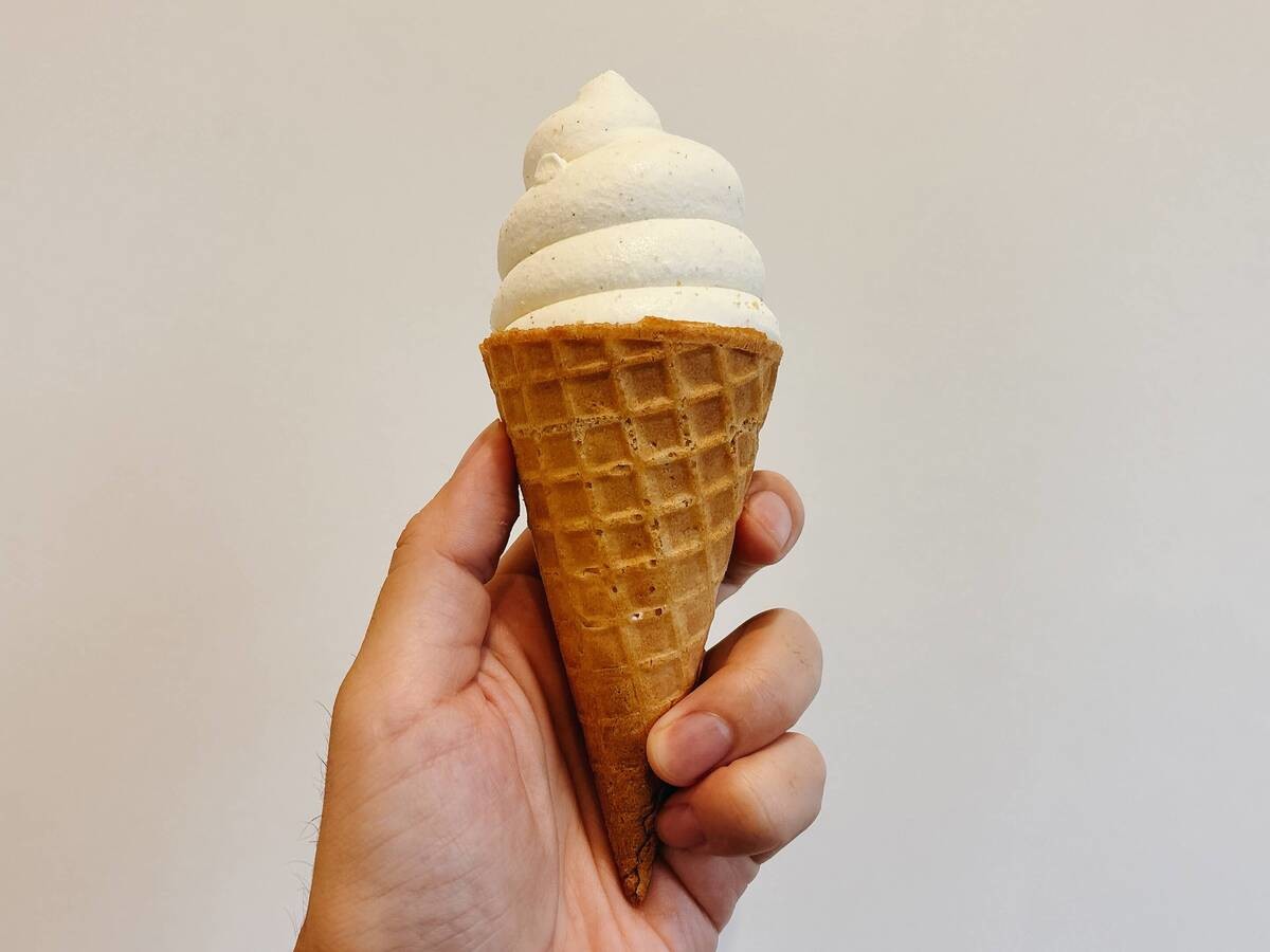 ワッフルコーンもサクサク、ザクザク。ほんのりと漂うバターの風味と、砂糖のやさしい甘みが完璧に計算されています。