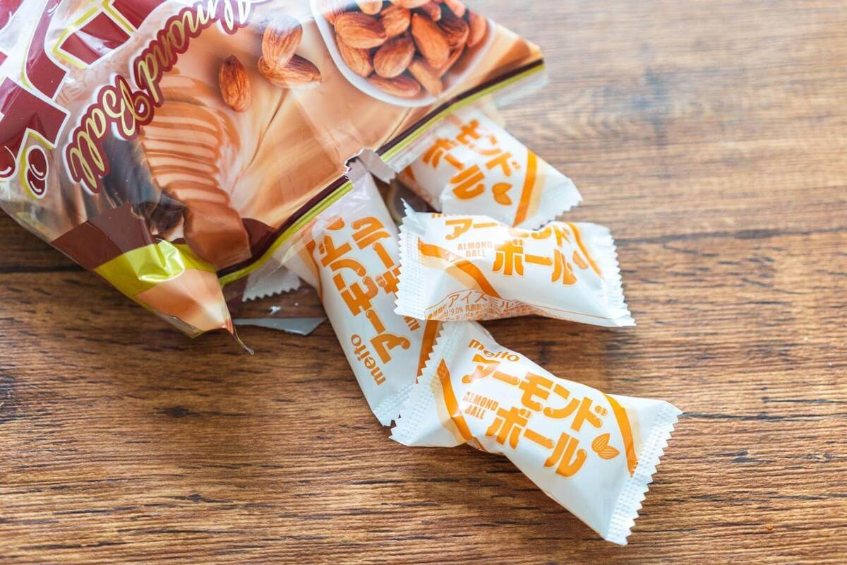こちらはひとくちチョコアイスのアーモンド味バージョン。似ているピノにもアーモンド味がありますが、普段はアソートパックにしか入っていません。