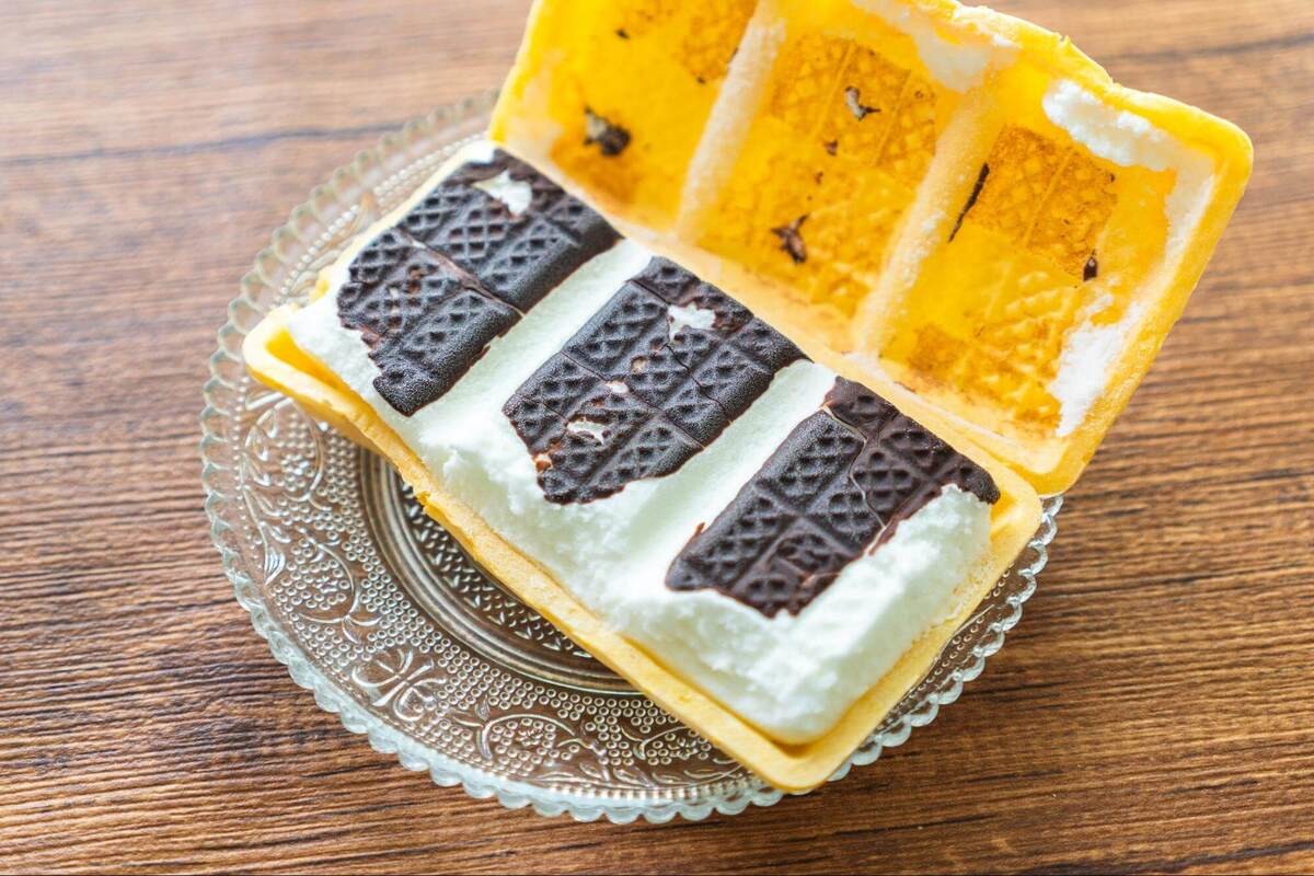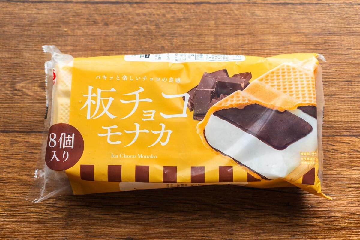 モナカにバニラアイスと板チョコをサンドした、贅沢感のあるアイス。