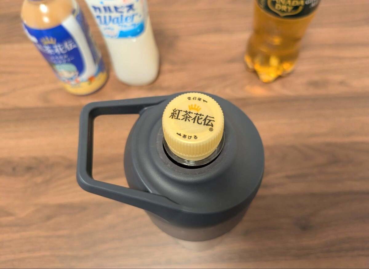 次に500mlと650mlのサイズを試しました。こちらは対応サイズなので、ホルダーにらくらく入り、そのままキャップを開けられて飲めます。