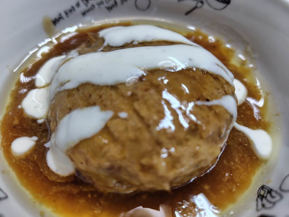 甘みのある玉ねぎが入ったソースのハンバーグです。
