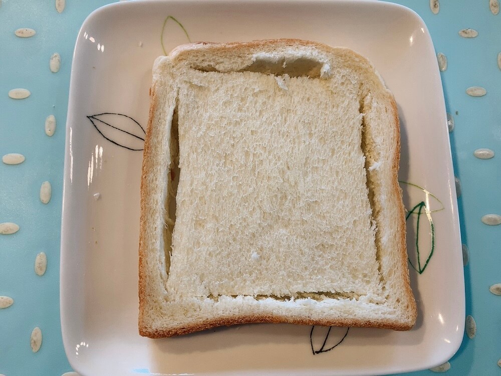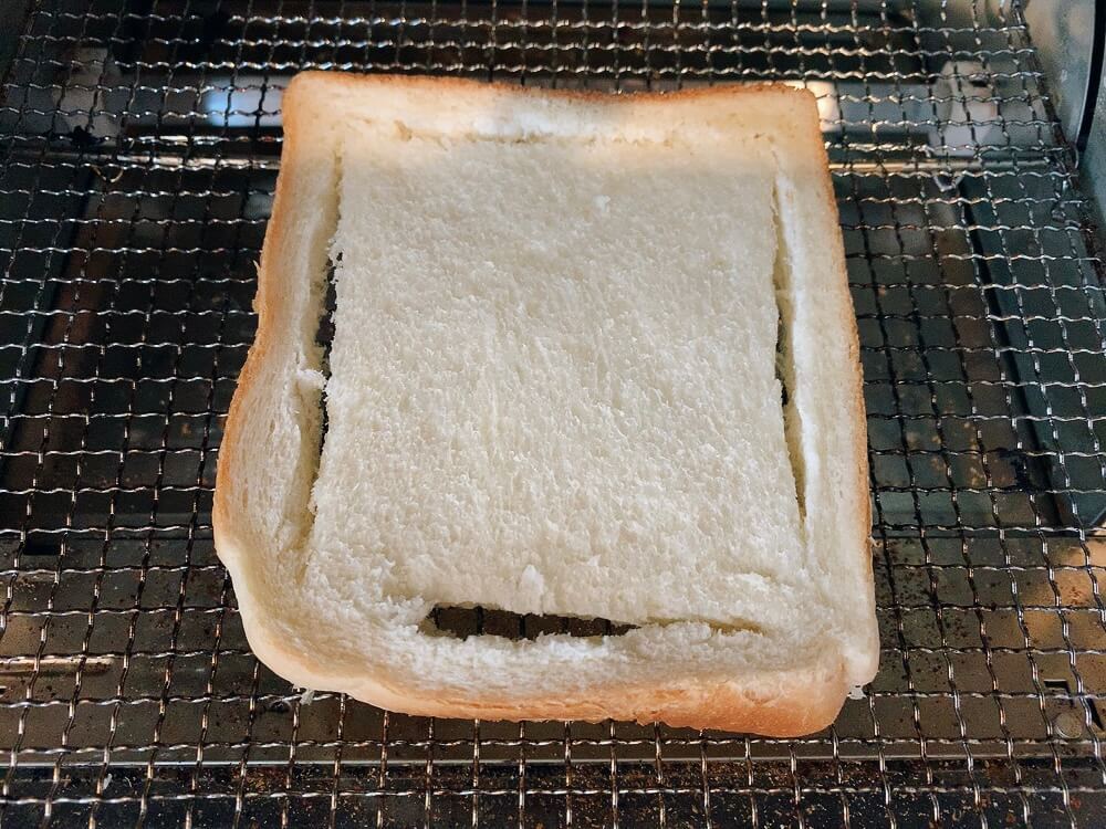 焼く前に、パンの耳に沿って切れ目を入れ、角だけ残るようにカットしましょう。