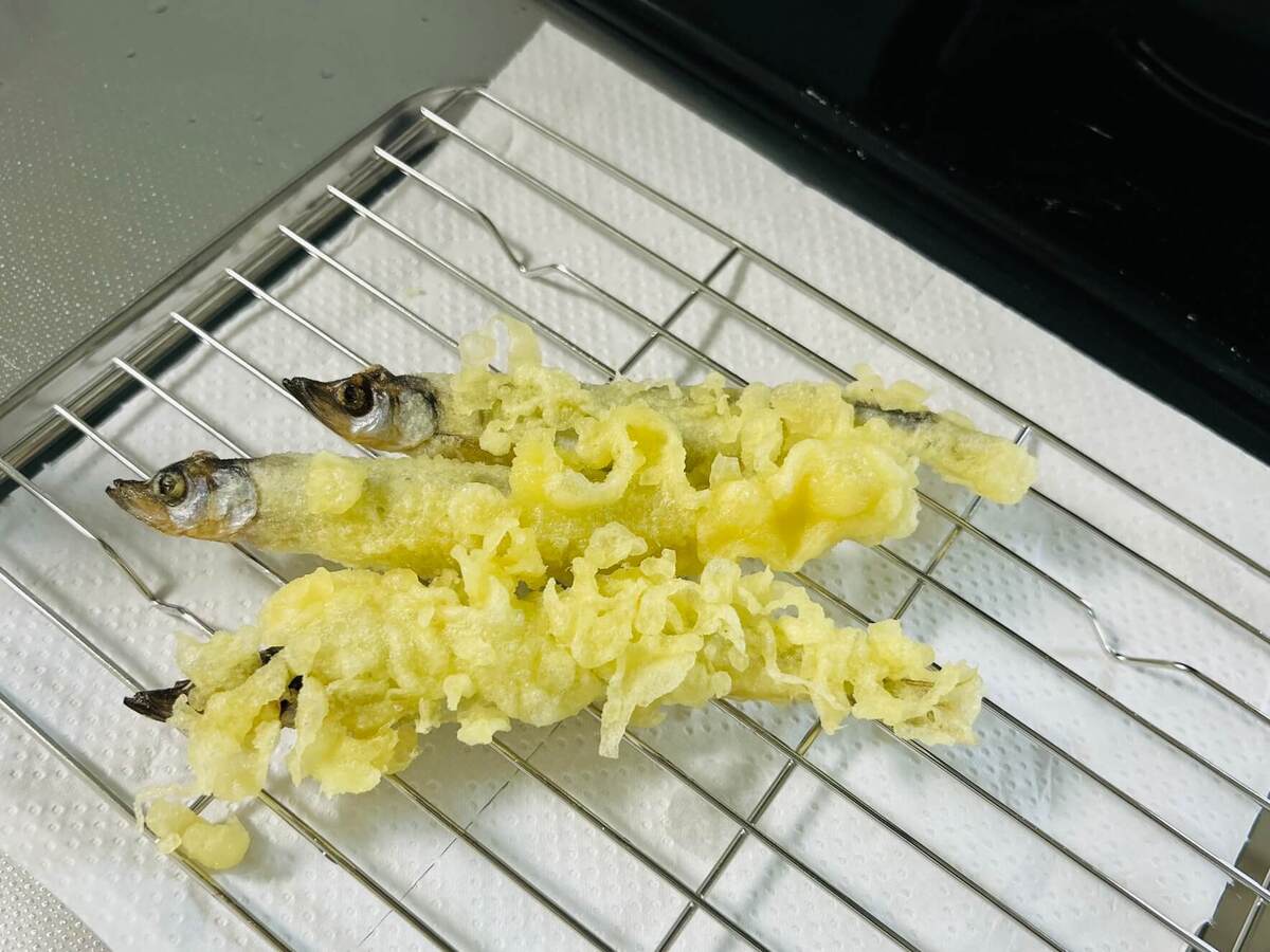 今回は、ししゃもを天ぷらにするという新発想に驚いたのはもちろんですが、天ぷら衣の完成度の高さにもびっくり!
