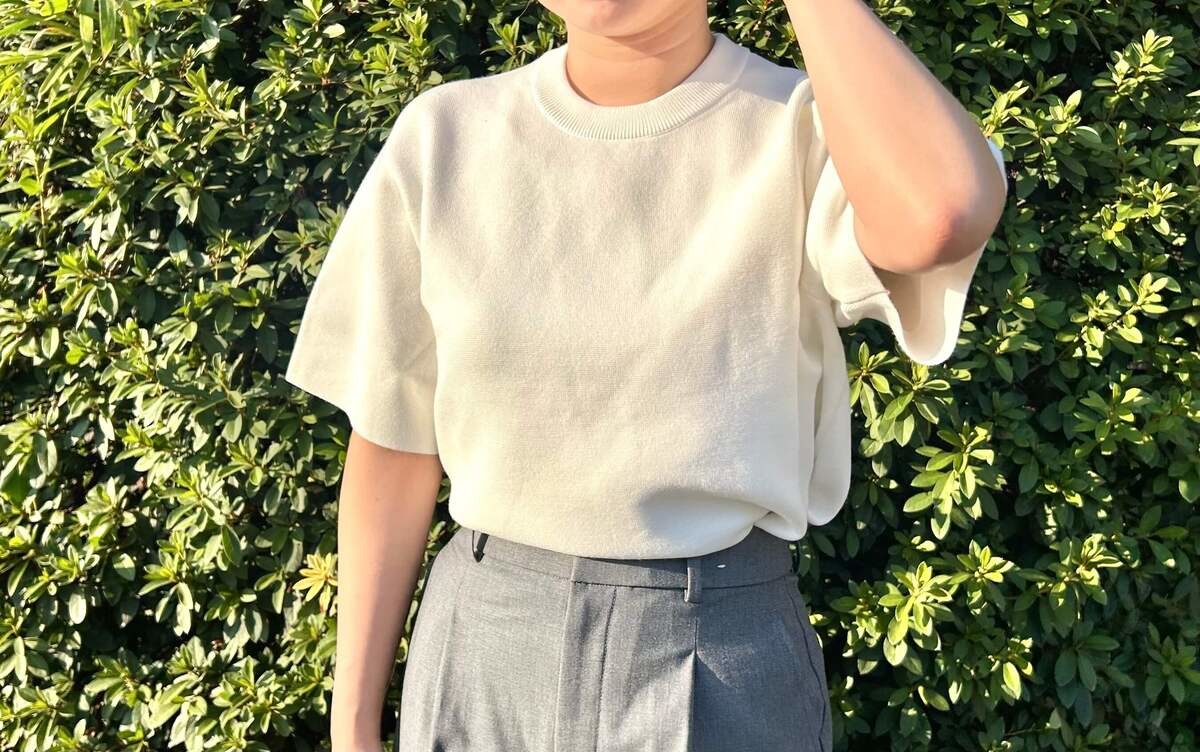そこでおすすめしたいのが、ユニクロの「ウォッシャブルミラノリブセーター/半袖」。着回し力も着心地も文句なしの優秀アイテムなんです♪
