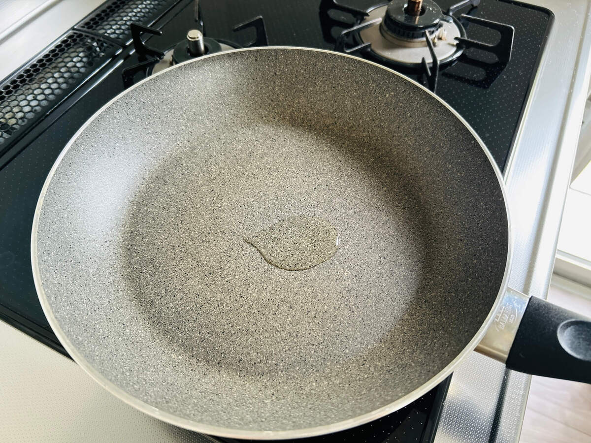 フライパンにサラダ油を大さじ1/2だけ入れて熱します。